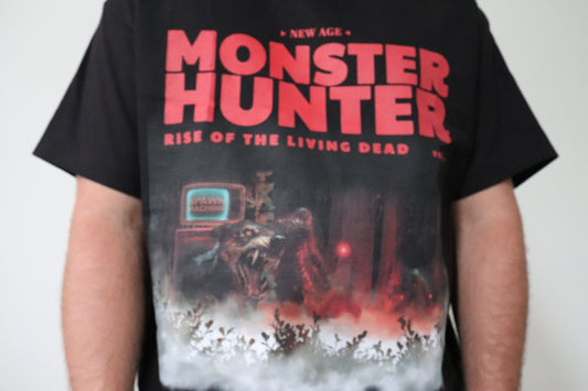 Video Game T-Shirt Arcade Design Zombie T-shirt Black Retro Arcade Shirt SciFi Monster Hunter T Design Halloween Spooky Heavy Cotton Shirt